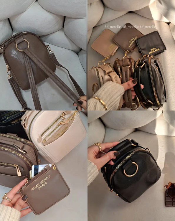 هم میتونه رو دوشت باشه و کج بندازیهم میتونه یه کوله روزانه جادار باشه.. ( شما هم عاشق جاکارتی آویز دارش شدین) •خوراک استایل کافه گردی،پیاده روی،کوله روزانه.. در این گوگولی بودنش خیلی جادارعه کوله سه کاره جاکارتی دار مارک رزمری پاریس رنگبندی جذاب پرطرفدار جنس چرم وارداتی بند دوشی بلند به صورت کوله و کج تنظیم میشه ابعاد:20/18/9