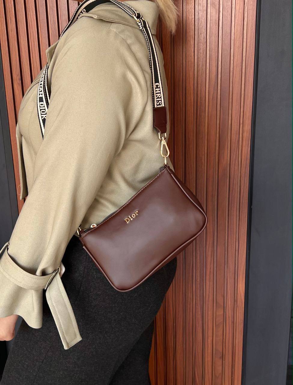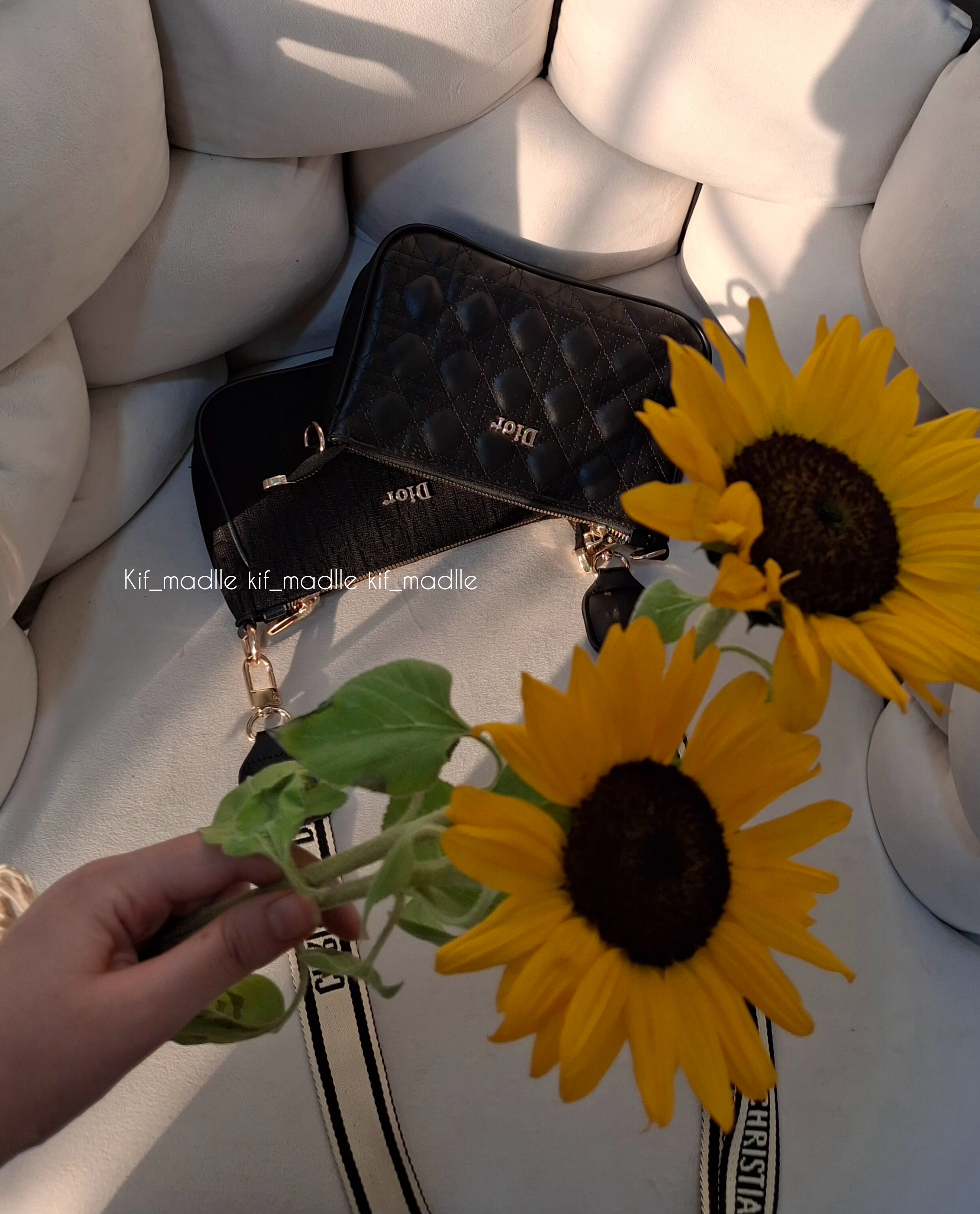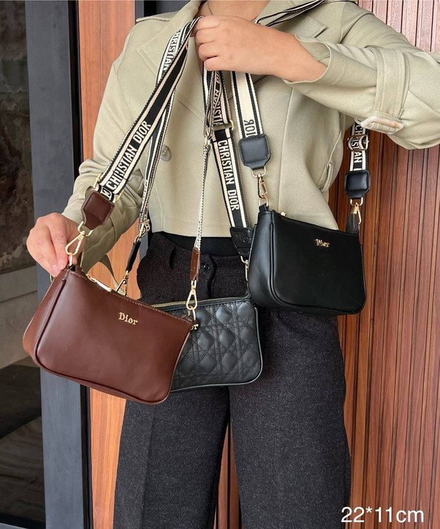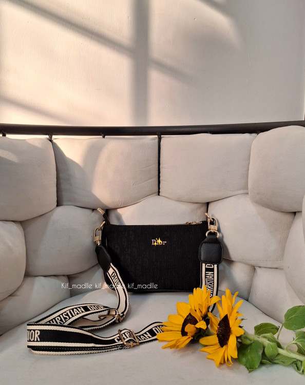 کیف دی.ور وارادتی با دو جنس برجستگی دی.ور و چرم درجه یک. یراق رنگ ثابت با بند حکاکی قابل تنظیم.