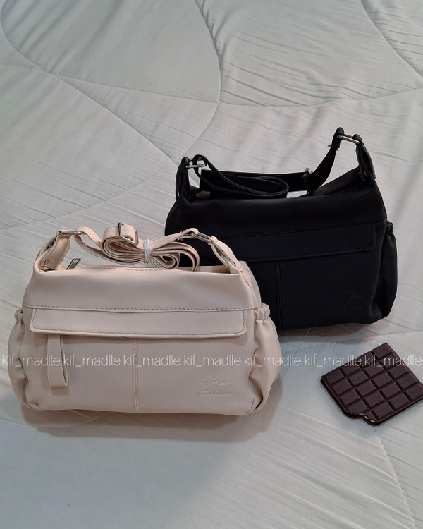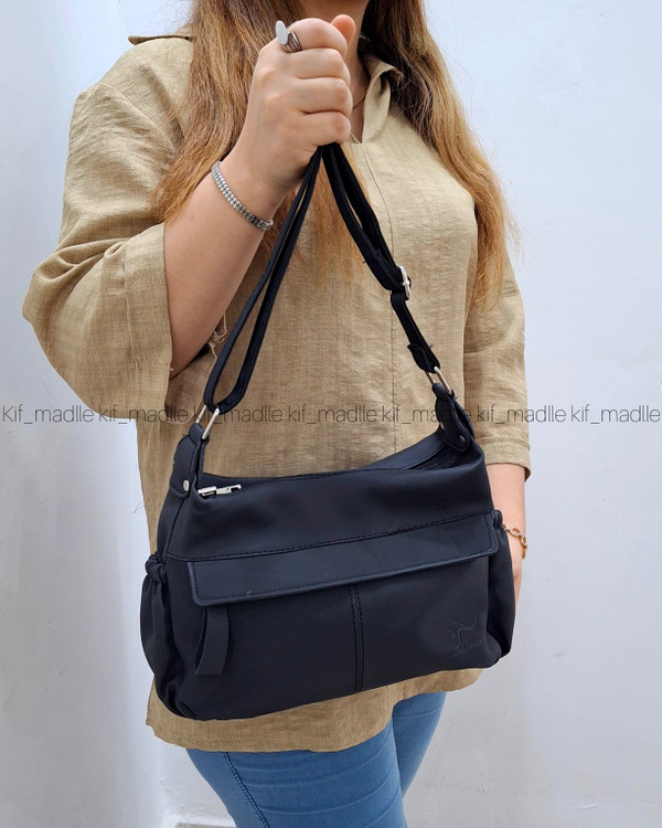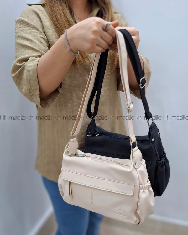 جنس؛: برزنتی درجه یک ضدآب مارک کانگرو چهار زیپه بسیار جادارعه بند دوشی قابل تنظیمه کاملا استرکشی خارجی شده (کیف سایز متوسط جادار مناسب سرکار،مهمونی،روزمره،پیاده روی)