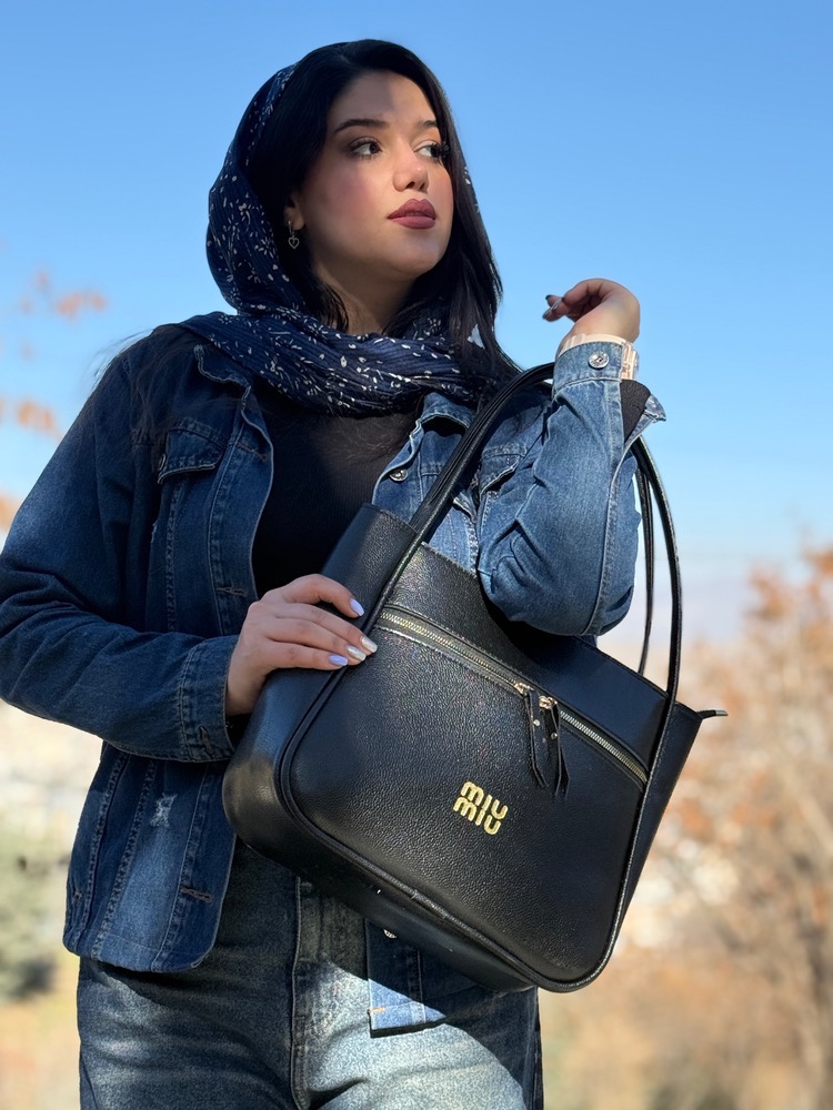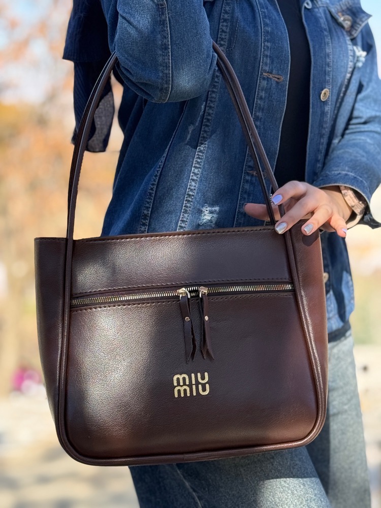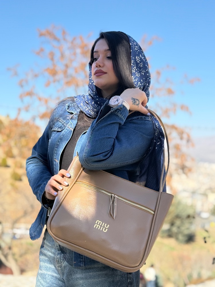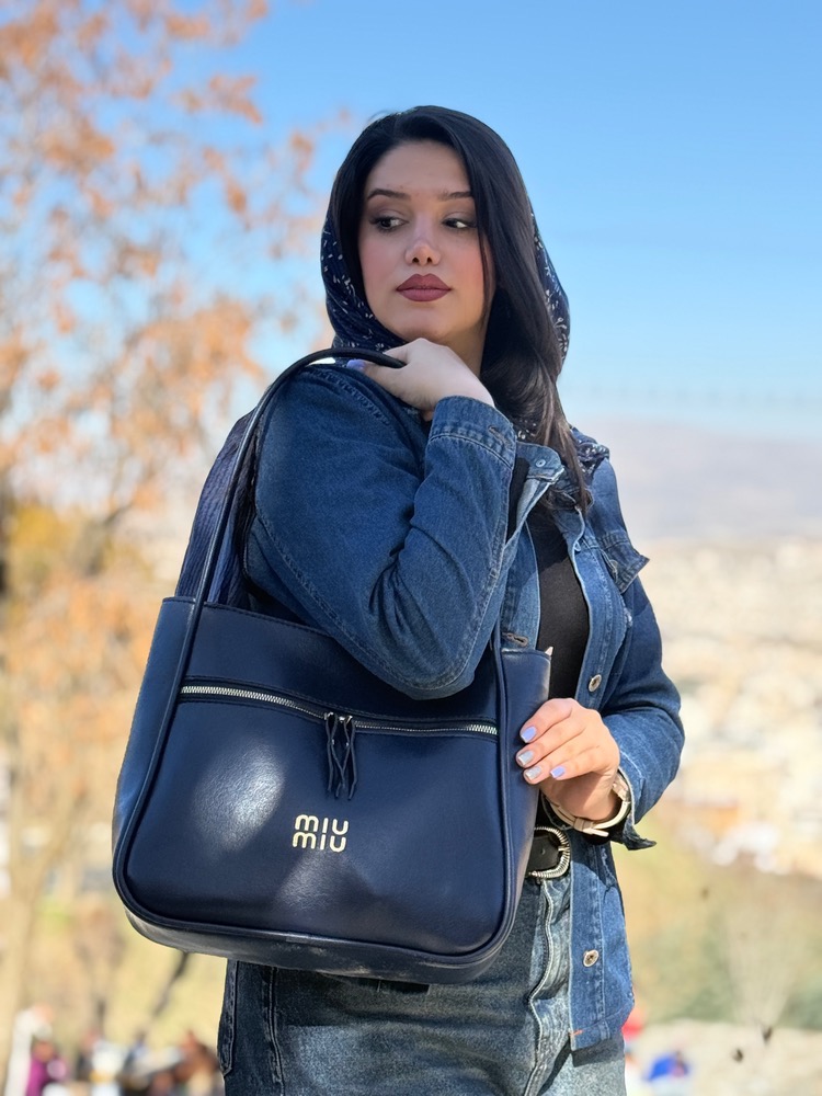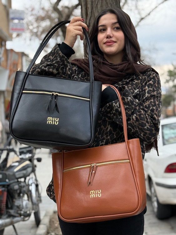 کیف زنانه سایز بزرگ مارک میو میو مدل جلو زیپ 🐈🐈⬛